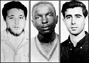 Michael Schwerner (rich white boy from New York), left, James Chaney, center, and Andrew Goodman (rich white boy from New York)